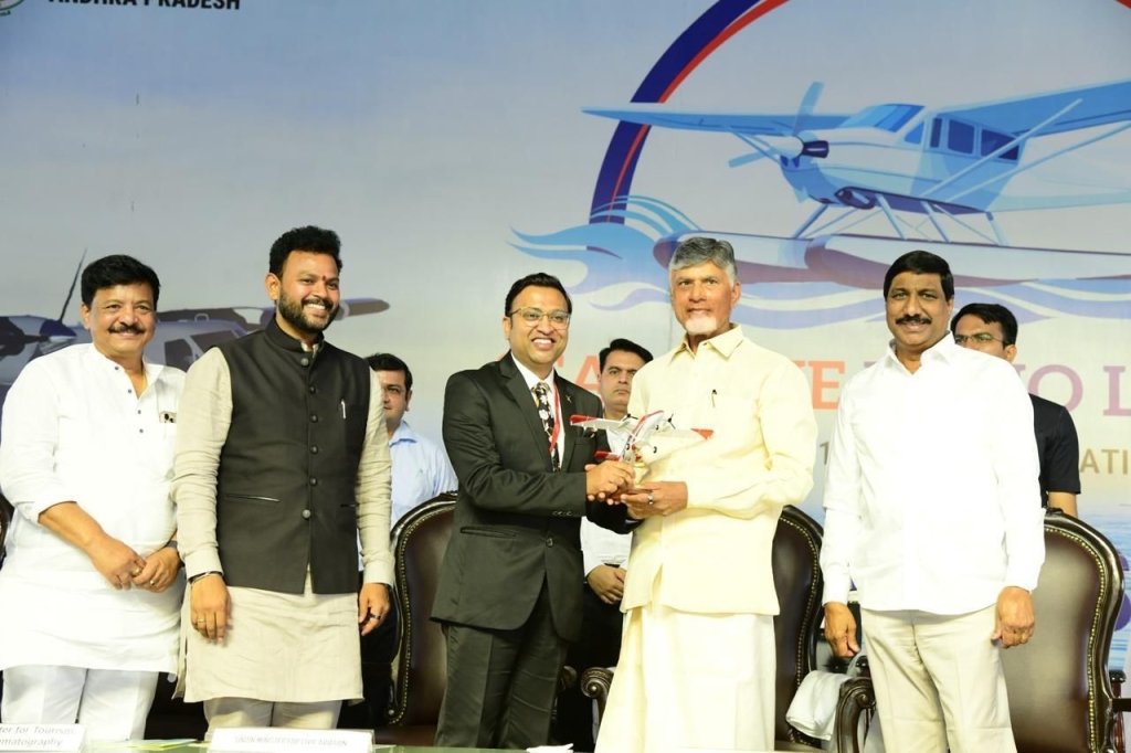 Chief Minister N. Chandrababu Naidu at the launch of the Twin Otter seaplane demonstration service between Prakasam Barrage and Srisailam. Photo: LinkedIn/Yogesh Garg