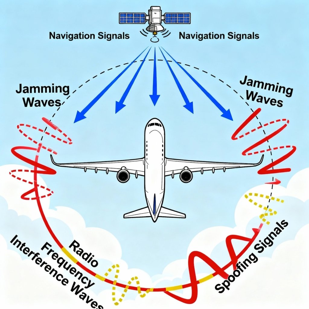 • Spoofing and jamming — deliberate radio-frequency attacks — can disrupt or manipulate navigation data, posing serious safety risks.
