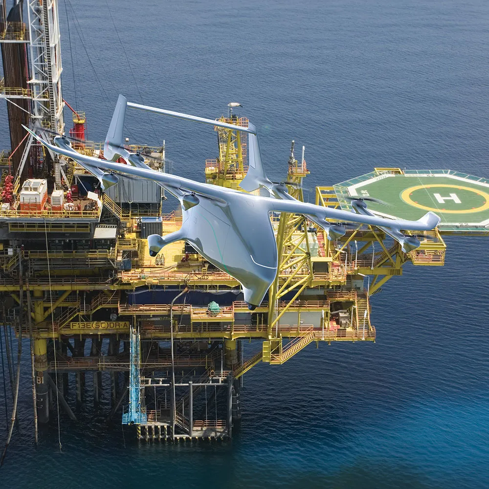 - The aircraft combines electric vertical lift with combustion-powered cruise, enabling regional range, faster turnarounds, and operations from space-constrained sites.