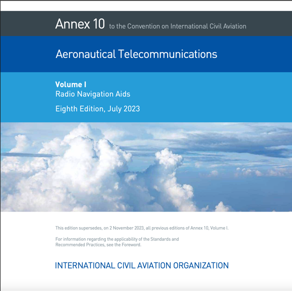 Annex 10, Volume 1, provides detailed information for all the Radio Navigation Aids (including Global Navigation Satellite Systems, GNSS). The Eighth Edition, published in July 2023, is the latest edition of the volume.