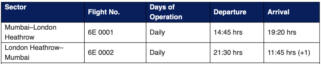 The flights will be operated daily using IndiGo’s Boeing 787-9 Dreamliner taken on wet/ damp lease from Norse Atlantic Airways, offering a dual-class configuration including Economy Class and IndiGo’s tailor-made business product, IndiGoStretch.