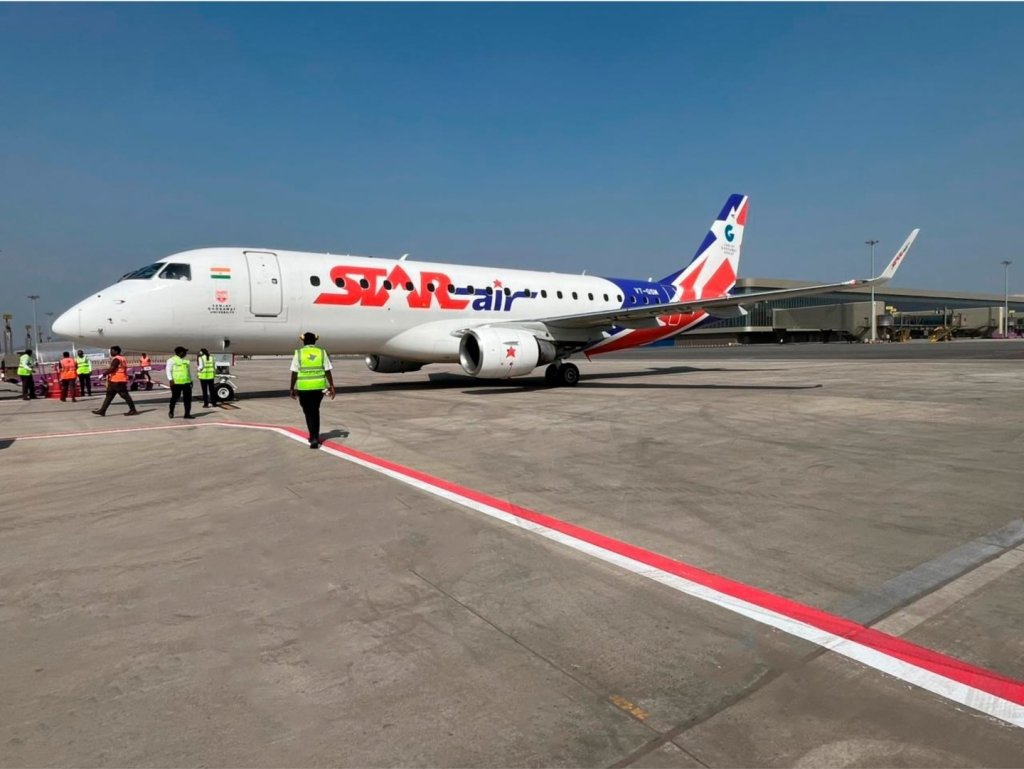 A Star Air aircraft on the apron at Navi Mumbai International Airport. Photo: Star Air