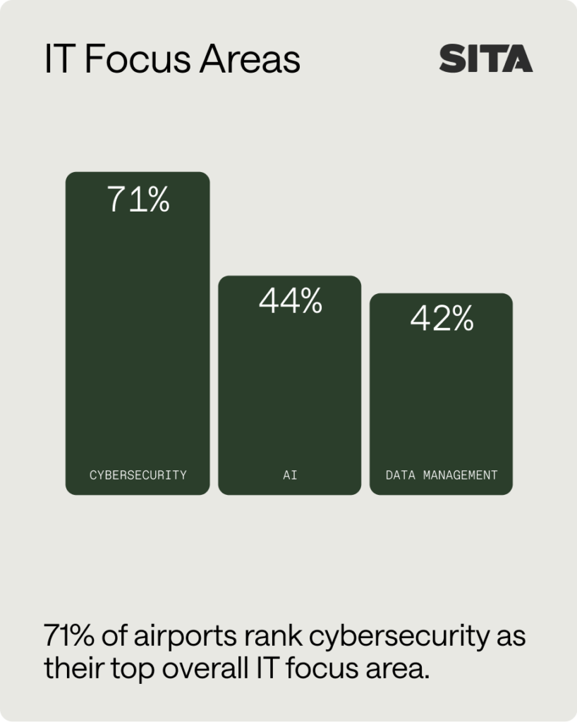 Seventy-one per cent of airports now rank cybersecurity as their top overall IT focus area, and 68% name it as the primary driver of infrastructure upgrades.