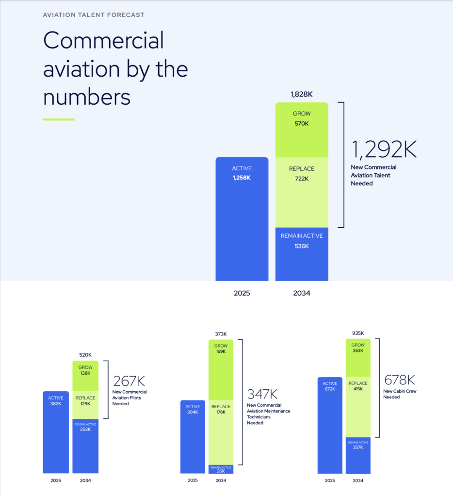 Beneath these optimistic projections lies a critical challenge: The CAE report notes that approximately 50 per cent of pilots worldwide will be new to the profession by 2034, underscoring the urgency of expanding robust training pipelines. A large wave of pilot retirements globally is already underway; 129,000 pilots will retire, while another 138,000 will be needed to support fleet growth. By 2034, the Asia-Pacific region will require 90,000 commercial pilots, 250,000 cabin crew, and 115,000 aircraft maintenance technicians.