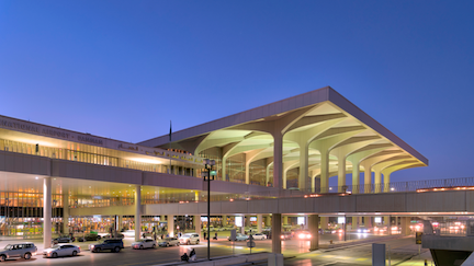 - A distinctive airport mosque sits atop the parking structure and can host ~2,000 worshippers.