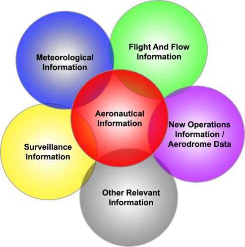 Aeronautical Information consists of surveillance data, meteorological information, flight data, air traffic flow management data, new operational information, and PANS-OPS charts of airports, as illustrated in Figure-1. The SWIM concept represents a transformative approach to managing information across the entire life cycle of an ATM process. Its implementation aims to deliver quality information to the right stakeholders, systems, and processes at the right time.